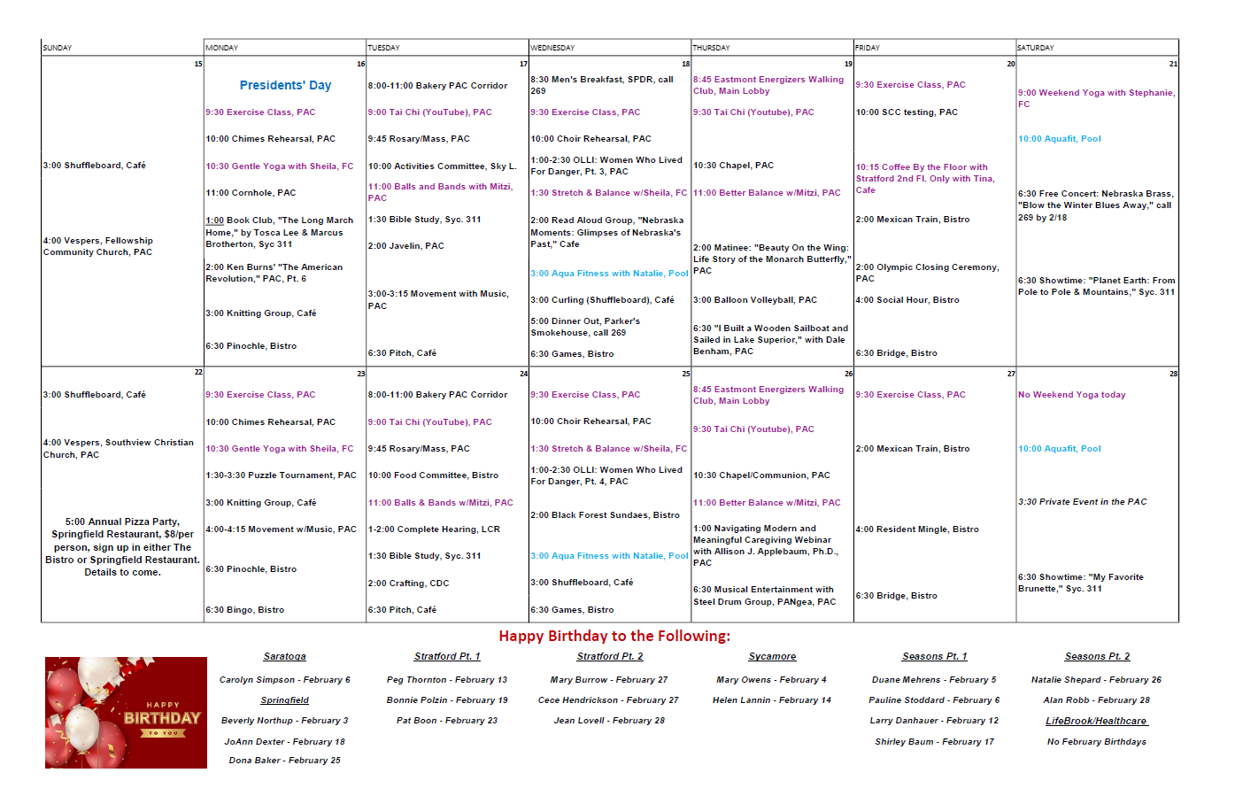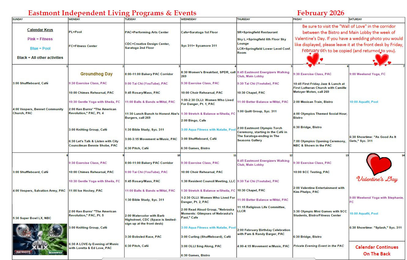 The Seasons Activities Life Brook Activities Independent January 1st- 17th Health Center Activities Independent January 18th-31st